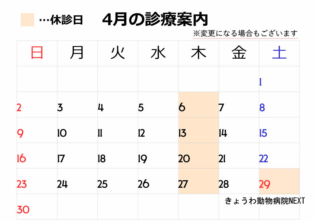 一般診療、各種予防(フィラリア、混合ワクチン、ノミ・マダニ、狂犬病)、避妊・去勢手術、各種健康診断